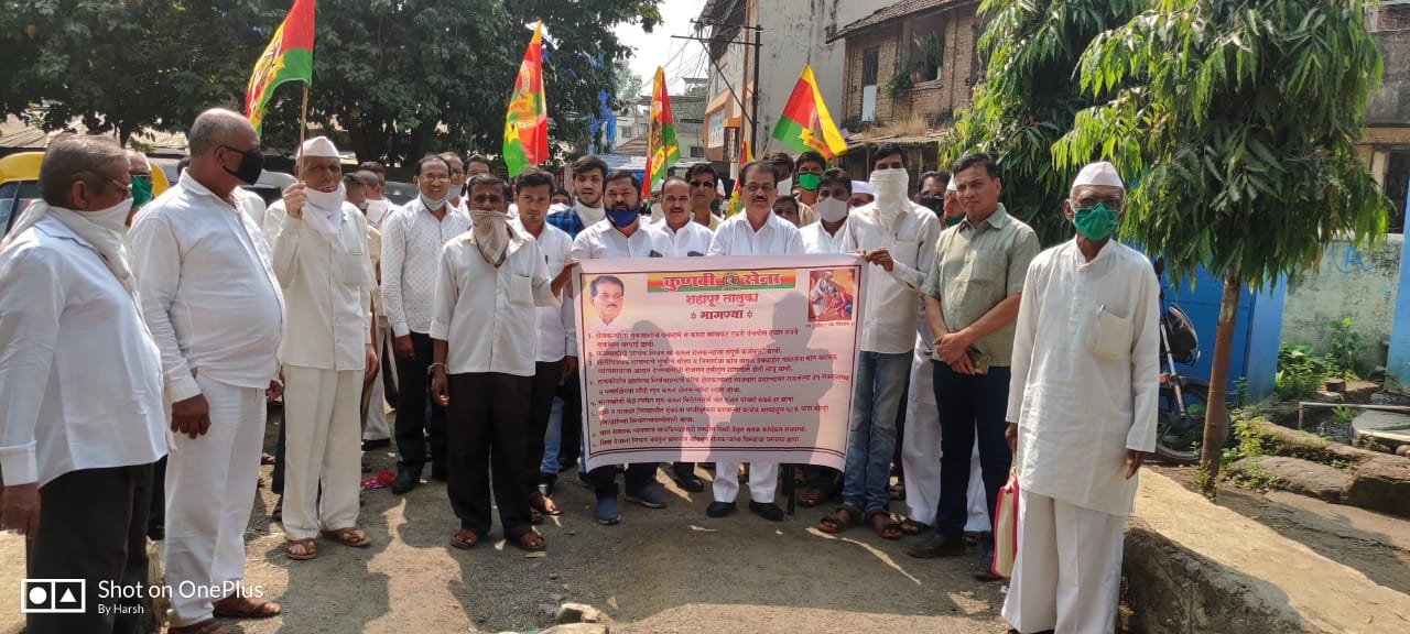 काल शहापूर तहसीलदार कार्यालयात कुणबी सेनेचे सेनापती विश्वनाथ पाटील यांच्या प्रमुख उपस्थितीत कुणबी सेनेने वरील मागणीसह ८ प्रमुख मागण्यांचे निवेदन तहसीलदार नीलिमा सूर्यवंशी यांना देण्यात आले,यावेळी बोलताना विश्वनाथ पाटील म्हणाले की कोरोना आणि दुष्काळ यात शेतकरी भरडला गेला आहे,मुख्यमंत्री उद्धव ठाकरे यांनी हेक्टरी १० हजार रुपये मदत ही तुटपुंजी असून शेतकऱ्यांच्या जखमेवर मीठ चोळणारी आहे,तरी शेतकऱ्यांचा अंत न पाहता सरसकट मदत करावी अशी मागणी करतानाच प्रशासनाकडून कार्यवाही न झाल्यास उग्र आंदोलन छेडण्यात येईल असेही पाटील यांनी सांगितले, यावेळी कुणबी सेनेचे तालुका अध्यक्ष दिनेश निमसे,कृष्णा भेरे,साई जाधव,सुरेश घरत,योगेश निपुर्ते शिवाजी सपाट यांचेसह अनेक कुणबी सैनिक उपस्थित होते